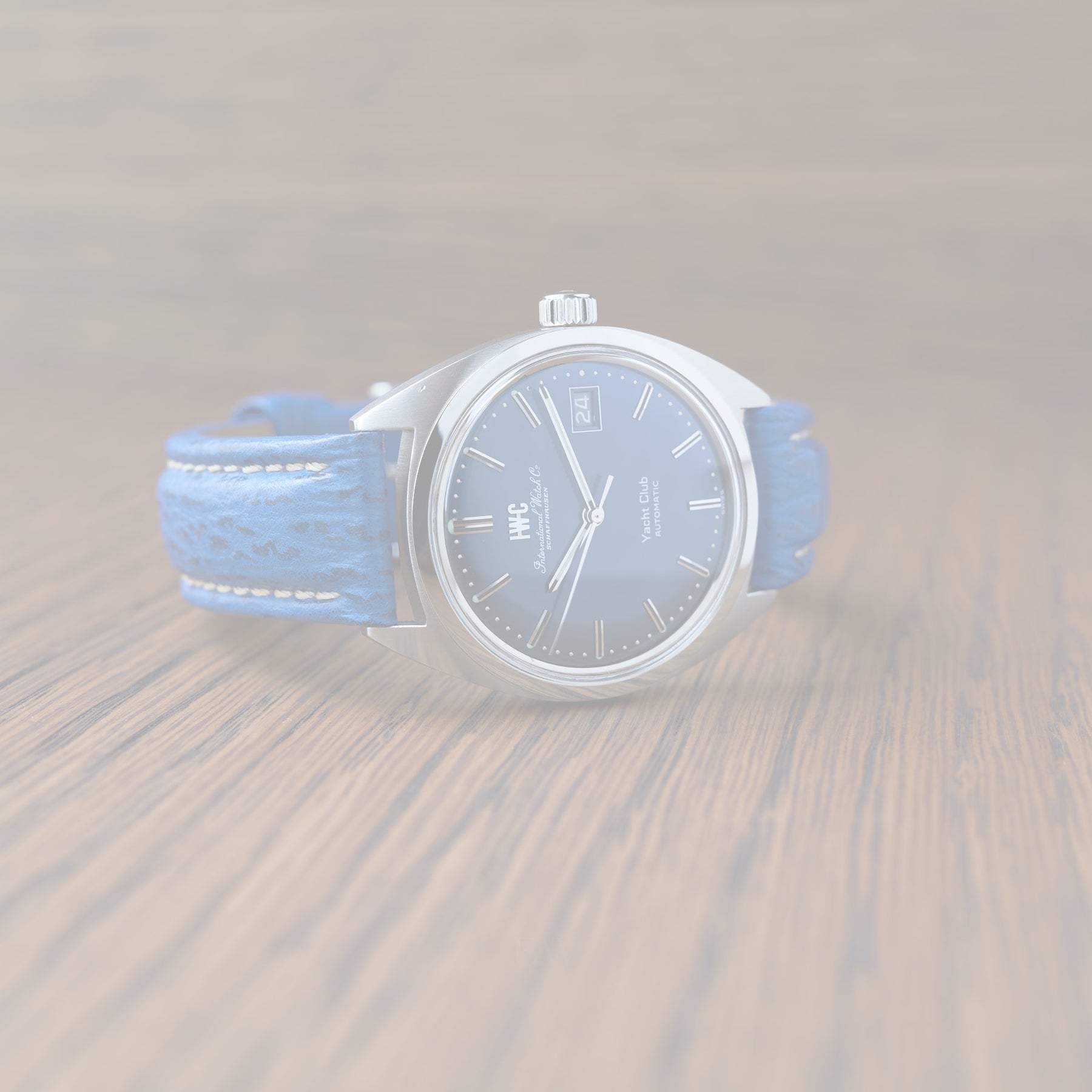 Strap Hirsch blue shark skin leather, and Hirsch 18 mm stainless steel buckle.